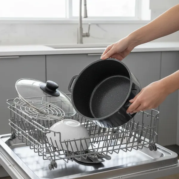 For best results and to extend the lifespan of your pan, handwashing with warm, soapy water and a soft sponge is recommended. Avoid abrasive cleaners or metal utensils that could damage the nonstick coating.